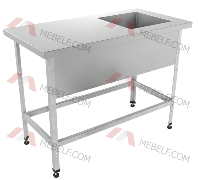 Ванна моечная с рабочей поверхностью правая ВМРП "Бизнес" 1600х600х860