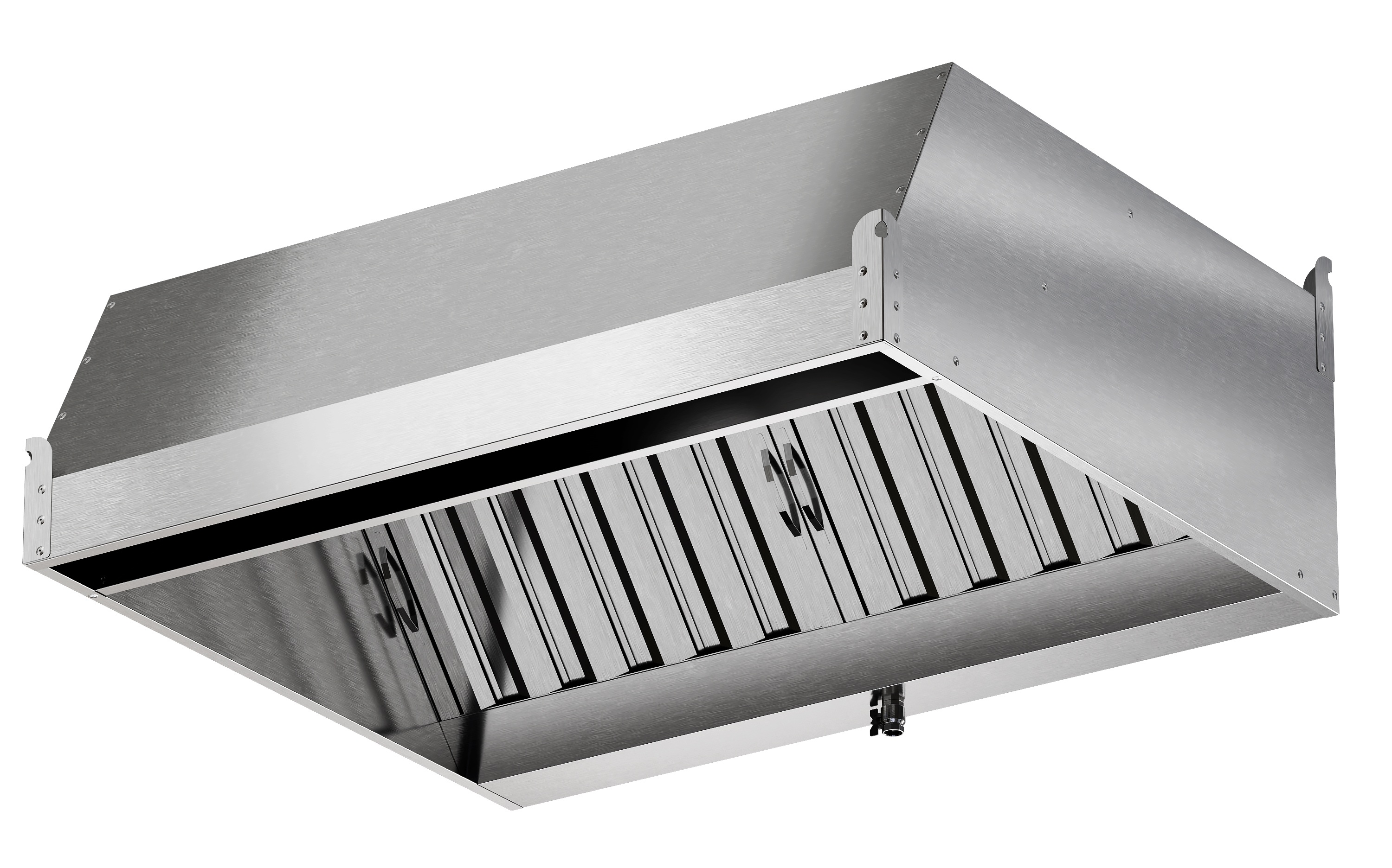 - Зонт приточно-вытяжной нержавеющий пристенный ЗВНП03 – зонт пристенный приточно-вытяжной выполнен из нержавеющей стали AISI430 толщиной 0,7 мм, задняя стенка изготовлена из оцинкованной стали 0,7 мм и оснащен встроенными нержавеющими жироуловителями для удаления жира. Имеет 1 врезку для оттока и 1 для притока воздуха (размер по согласованию)